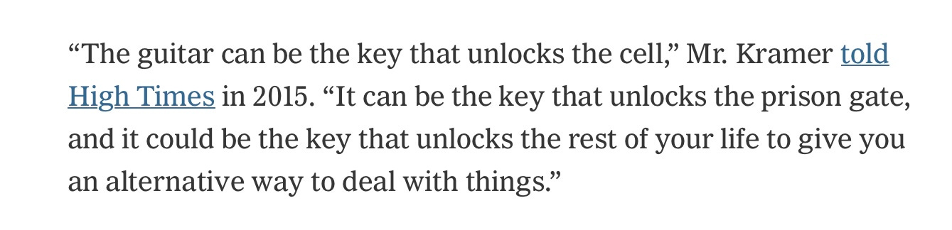 Specifically, the song refers to Wayne’s run-in with the law. He served some time in prison on drug charges. When he got out he started Jail Guitar Doors to bring music—instruments, songwriting workshops—to the incarcerated. Which brings us to the quote at the top of this post, which was featured in his NYT obituary.